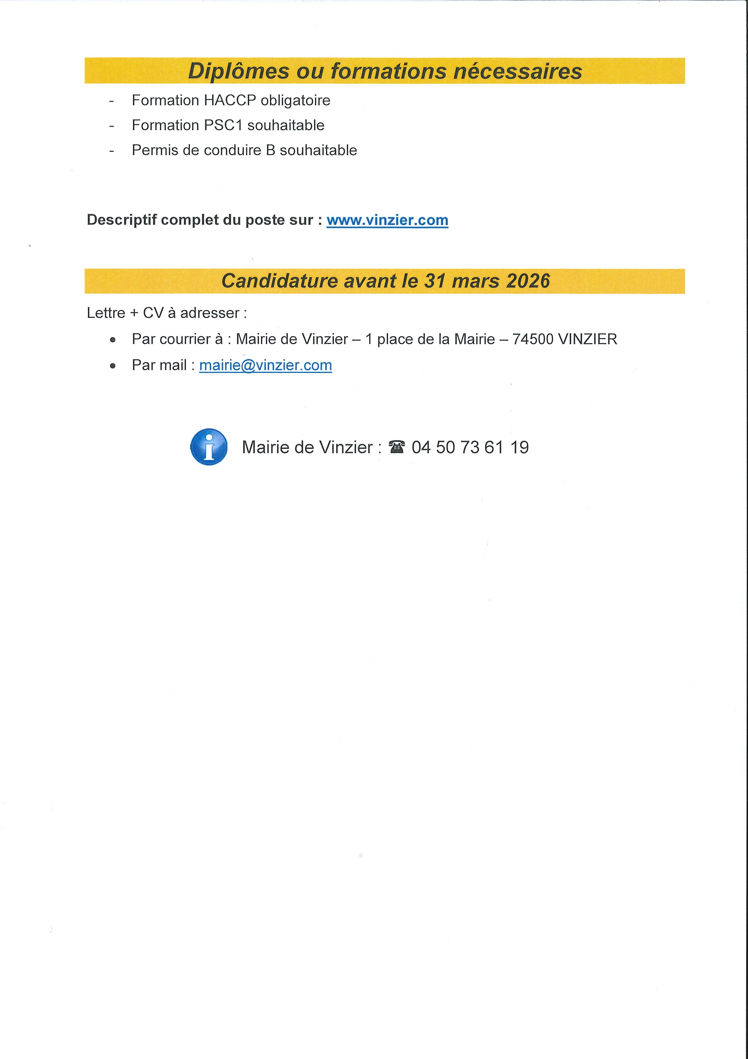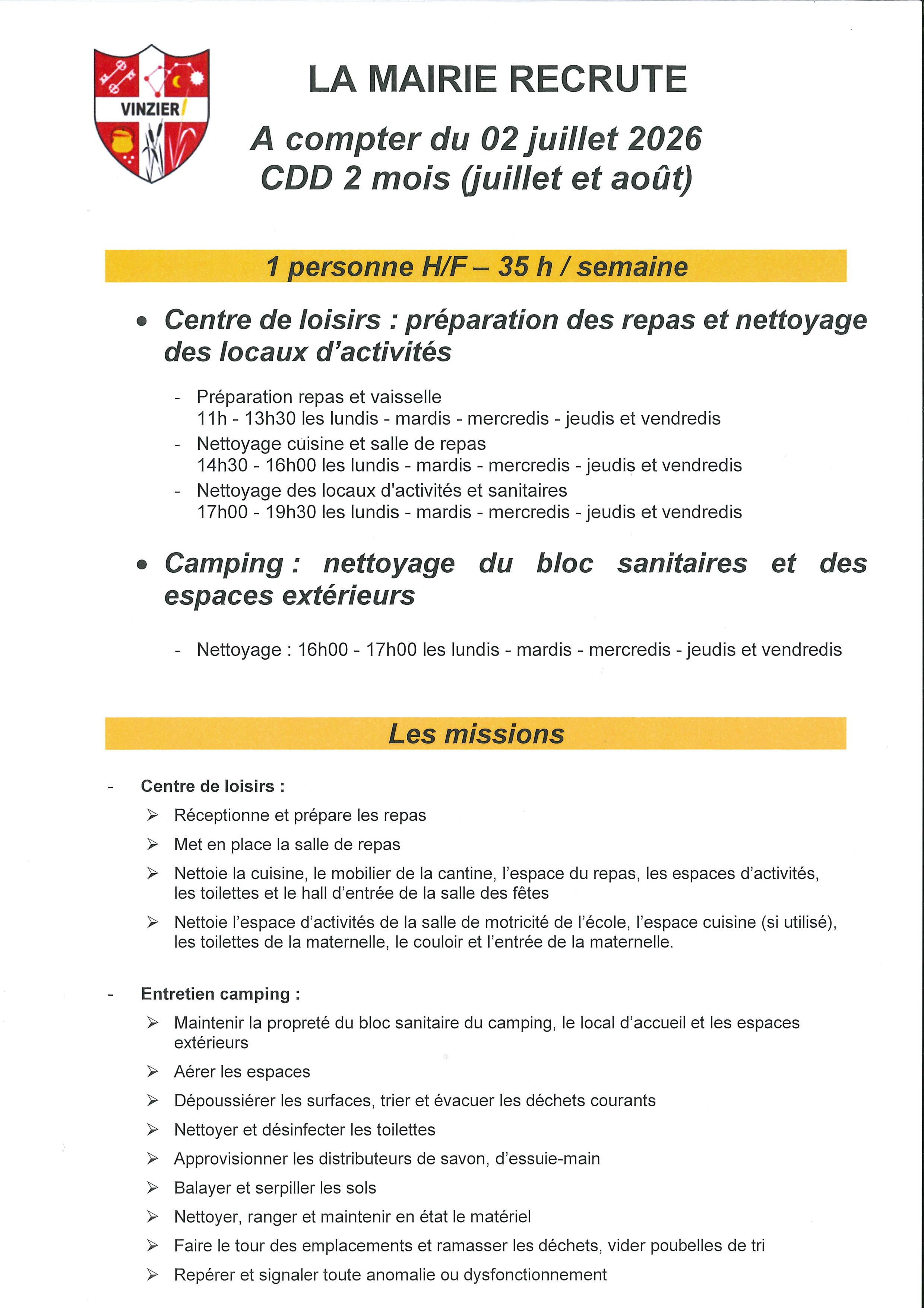 fiche de poste centre de loisirs cantine et nettoyage / entretien du camping