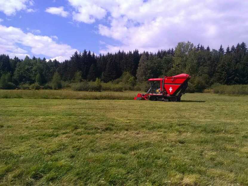 Ainsi, des travaux d’arrachage manuel des jeunes arbres ont été menés en hiver sur une surface de 2.36 hectares de réouverture, soit environ 41 jours de travail réalisés par une équipe de 5 personnes en insertion. Broyage et fauche d’entretien ont été réalisés sur une surface totale de 3.5 hectares. Le broyage mécanique est réalisé par un engin léger sur chenilles en caoutchouc pour éviter d’impacter la faune, la flore et le sol peu portant, avec du matériel adapté.