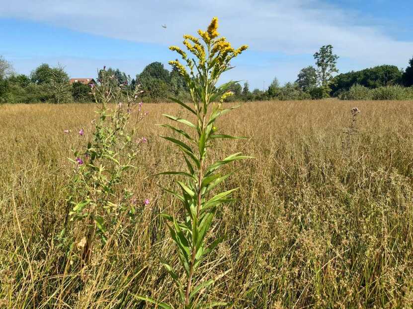 L’expansion des espèces exotiques envahissantes (introduites hors de leur aire de répartition naturelle) est la deuxième cause de la perte de biodiversité dans le monde. Sur le plateau de Gavot, des solidages originaires du continent américain s’étendent au détriment de la biodiversité locale. Afin de réduire leur avancée dans les marais, un arrachage manuel et fauche des plants sont réalisés avant qu’ils n’arrivent à maturité.